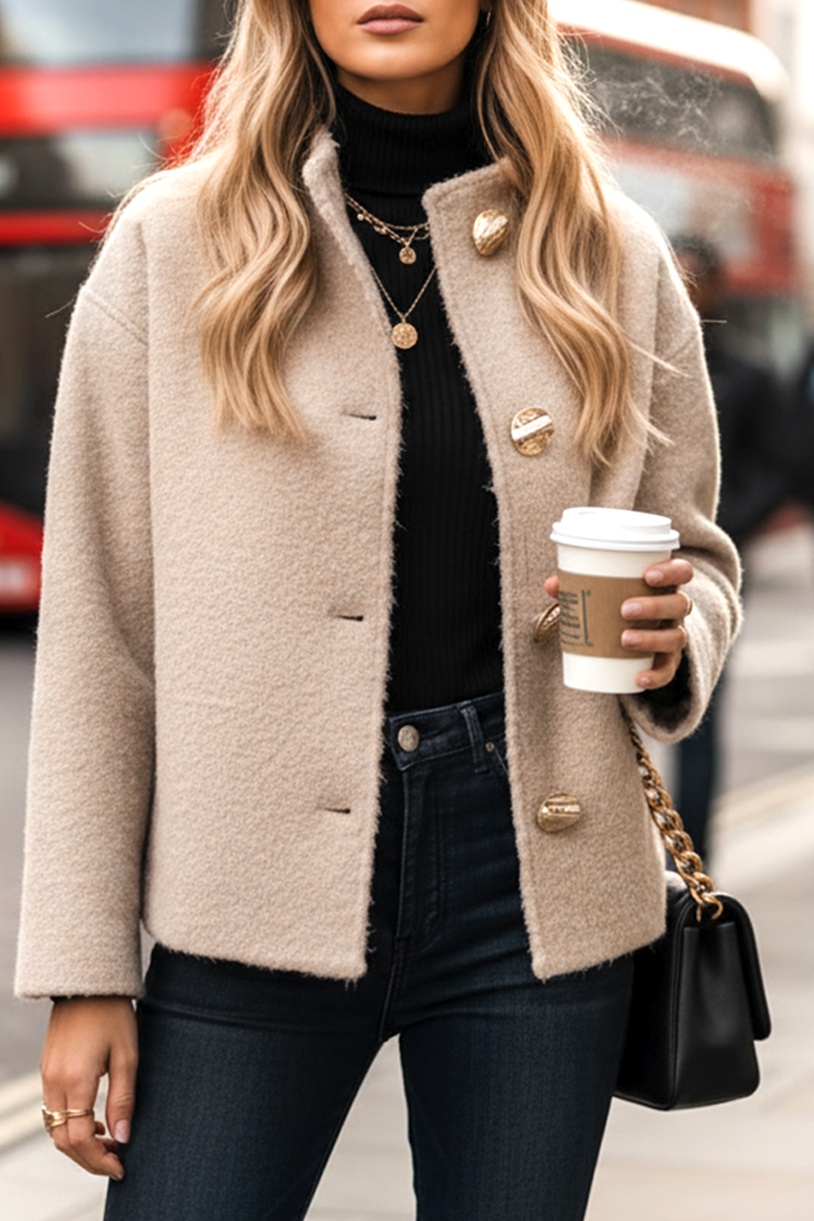 - Το μοντέλο έχει άνετη γραμμή και εντυπωσιακά μεταλλικά κουμπιά σε όλο το μήκος.