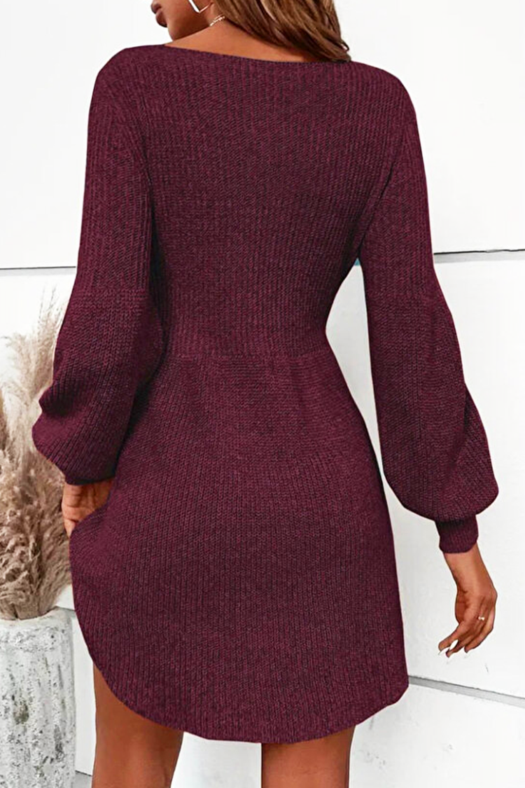 - Το φόρεμα έχει άνετη γραμμή, στρόγγυλη λαιμόκοψη και μακριά μανίκια.