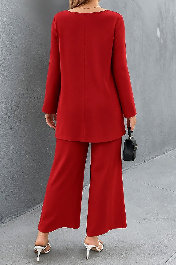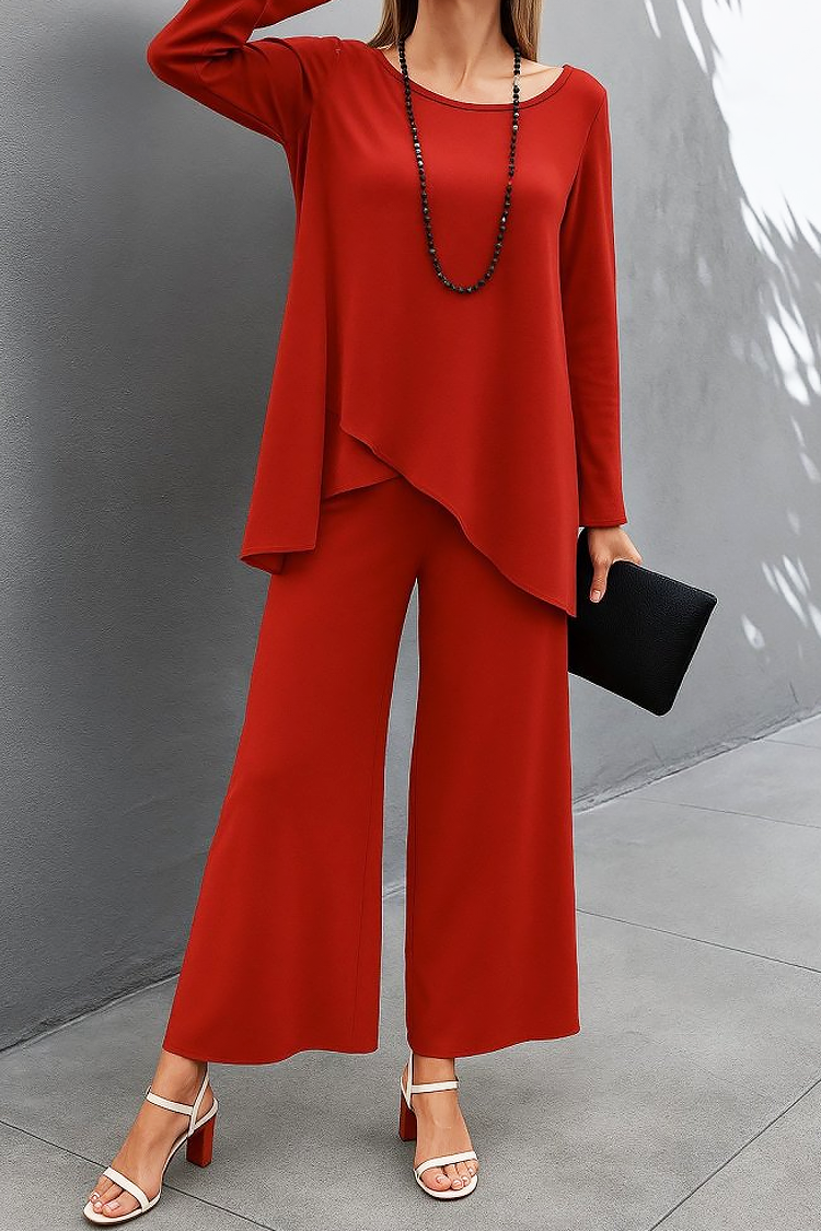 - Επίσημο γυναικείο σετ δύο τεμαχίων με μονόχρωμο σχέδιο.