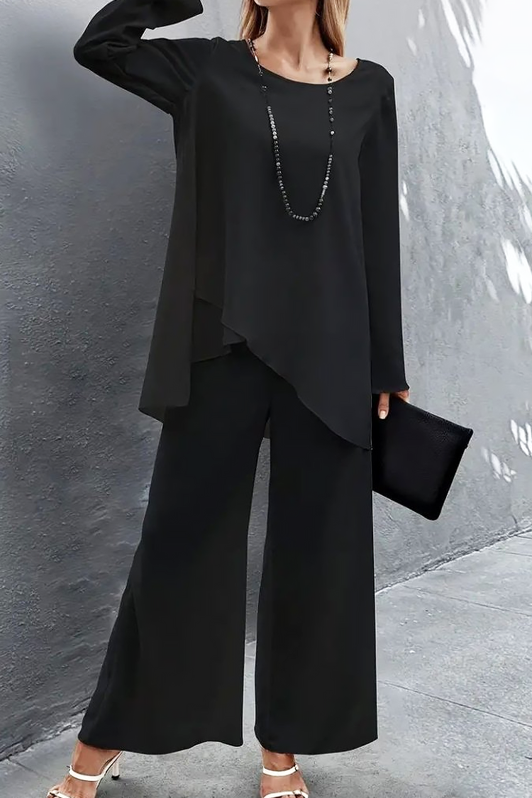- Επίσημο γυναικείο σετ δύο τεμαχίων με μονόχρωμο σχέδιο.