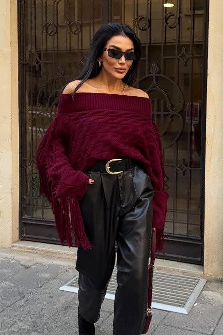 - Κομψό γυναικείο πουλόβερ σε μπορντό χρώμα, κατάλληλο για καθημερινές και μοντέρνες εμφανίσεις.