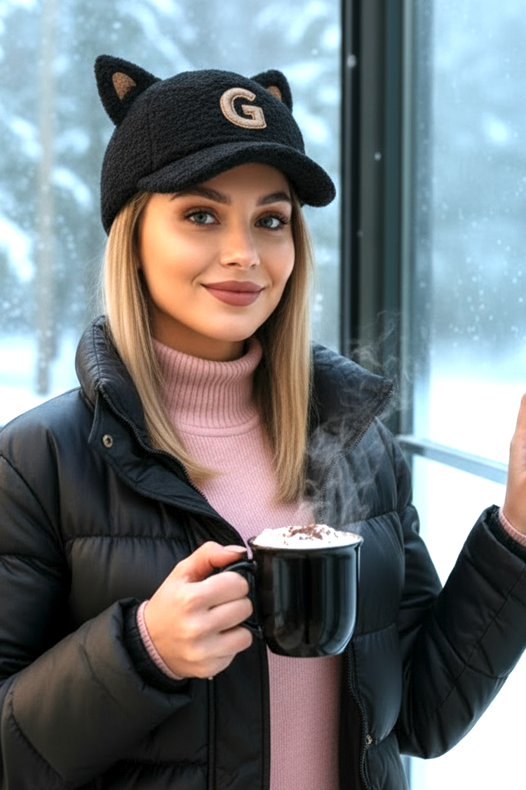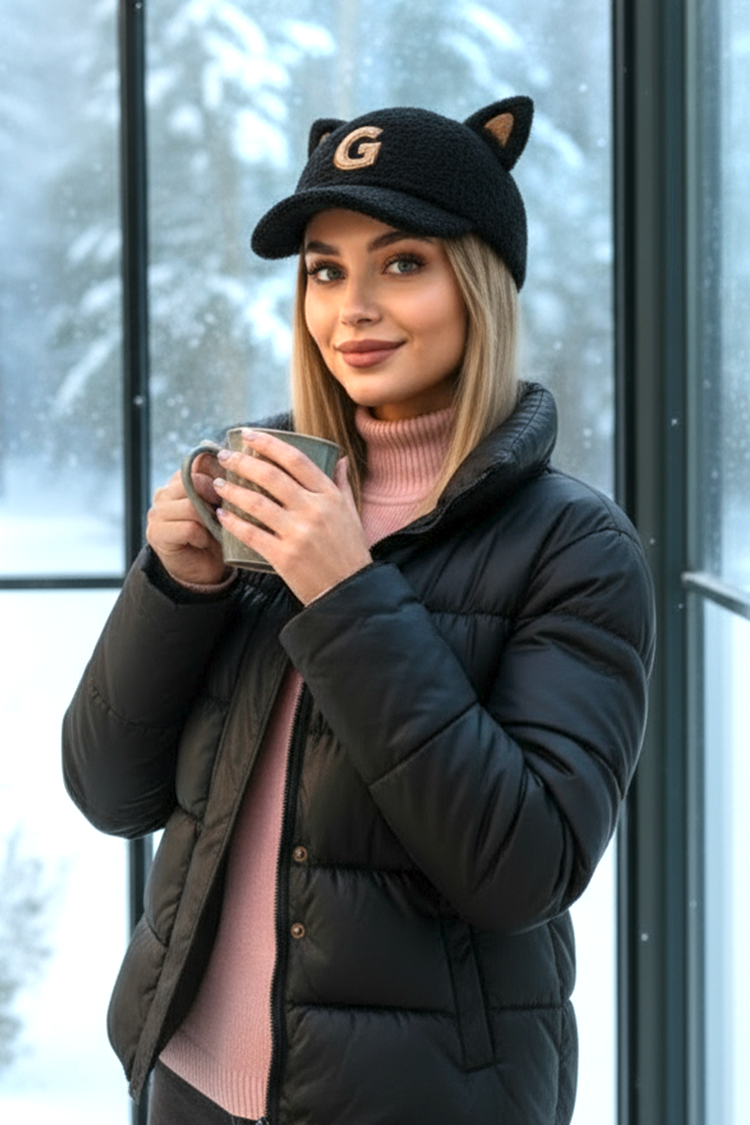 - Για μια κομψή εμφάνιση στις κρύες μέρες, επιλέξτε αυτό το αφράτο καπέλο με γείσο και αυτιά.