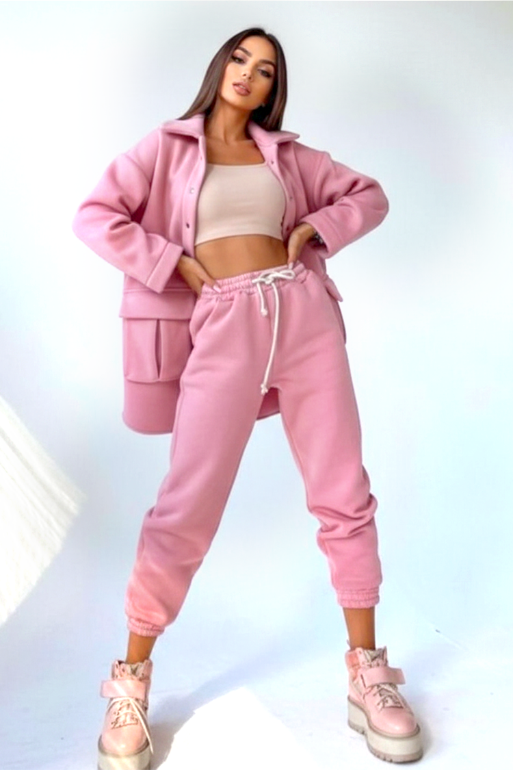 - Καθημερινό γυναικείο σετ δύο τεμαχίων με μονόχρωμο σχέδιο.