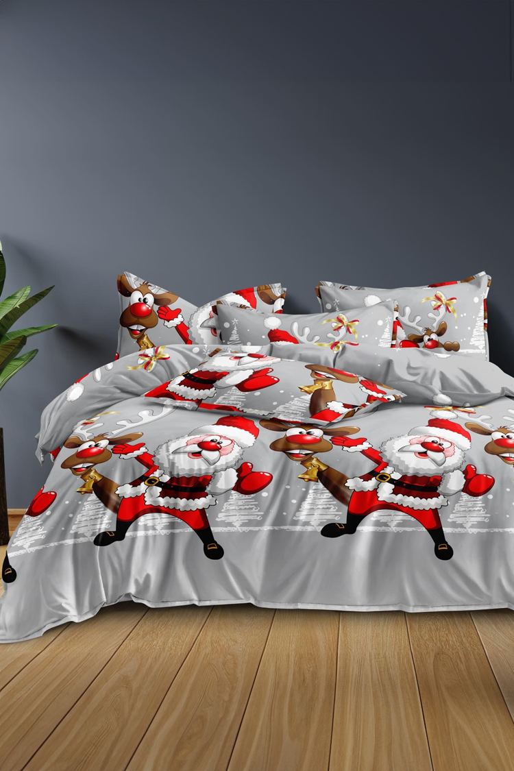 - Χριστουγεννιάτικο σετ κρεβατοκάμαρας τεσσάρων τεμαχίων με διαστάσεις 160x200 cm, κατασκευασμένο από υψηλής ποιότητας βαμβακερό σατέν.