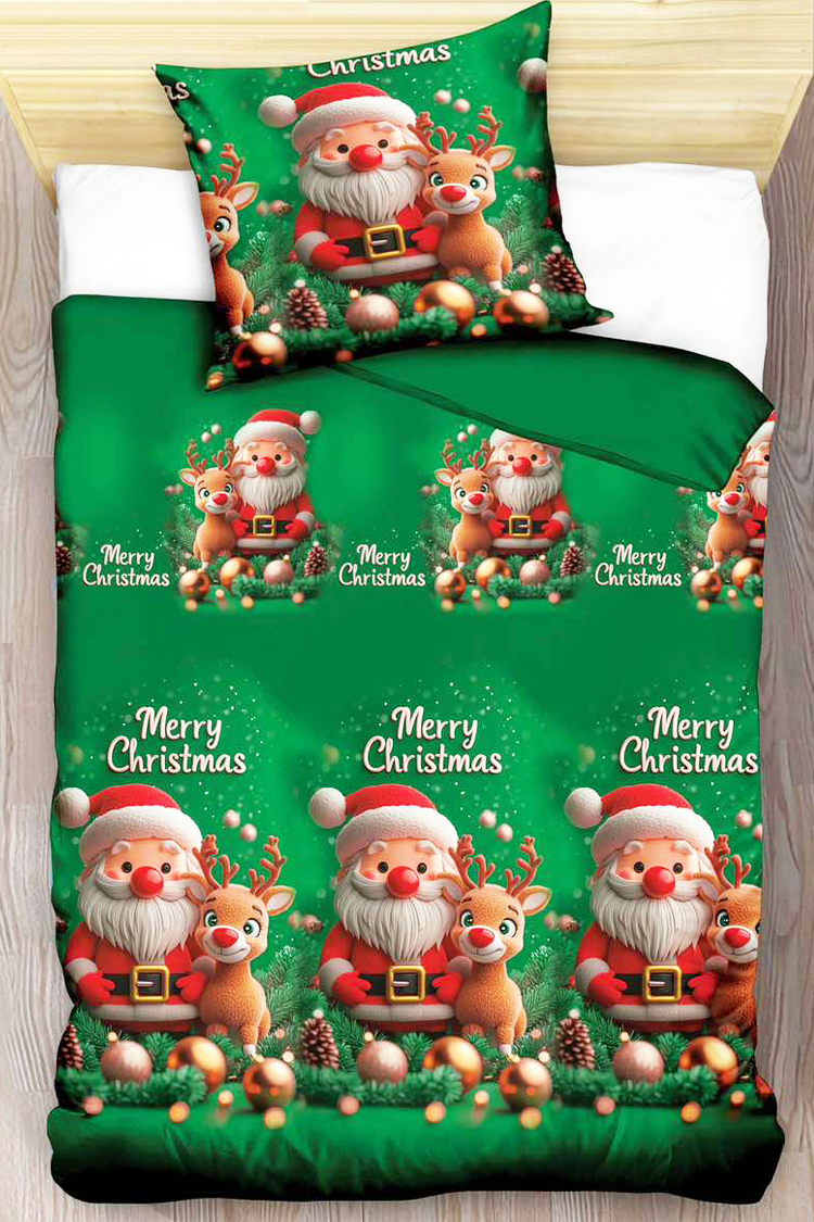 - Σετ κρεβατοκάμαρας δύο τεμαχίων με διαστάσεις 140x200 cm, κατασκευασμένο από υψηλής ποιότητας βαμβακερό σατέν με χριστουγεννιάτικα μοτίβα.