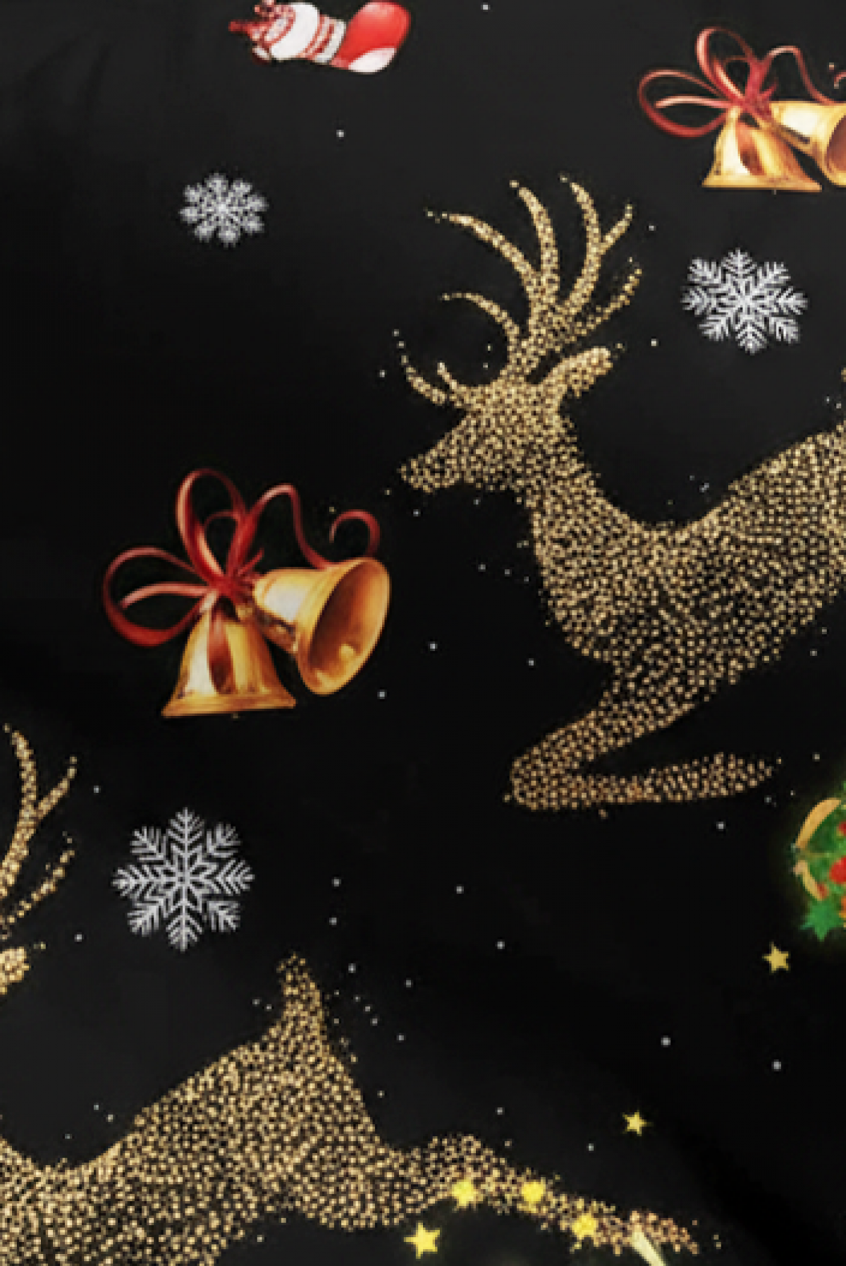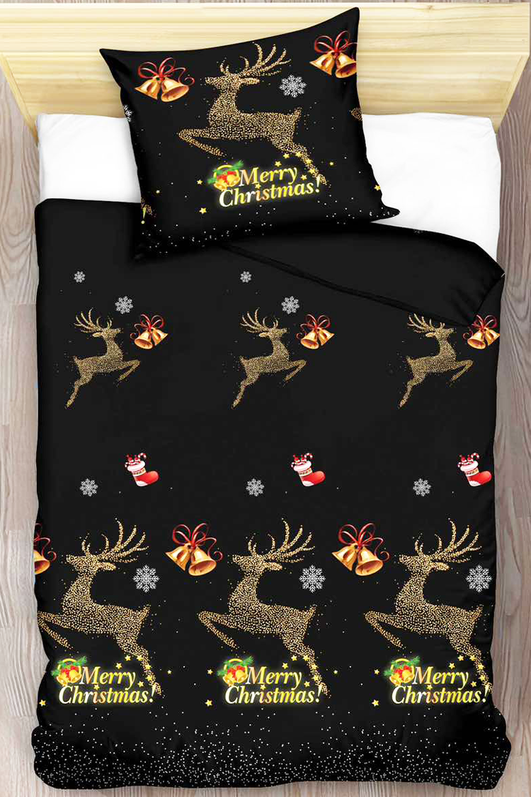 - Σετ κρεβατοκάμαρας δύο τεμαχίων με διαστάσεις 140x200 cm, κατασκευασμένο από υψηλής ποιότητας βαμβακερό σατέν με χριστουγεννιάτικα μοτίβα.