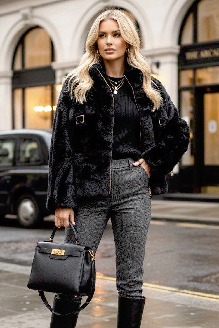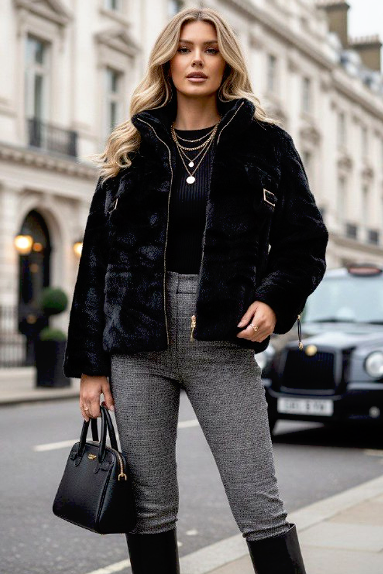 - Το μοντέλο εντυπωσιάζει με την άνετη γραμμή, ογκώδη γιακά, τις τσέπες και το εύκολο κλείσιμο με φερμουάρ.