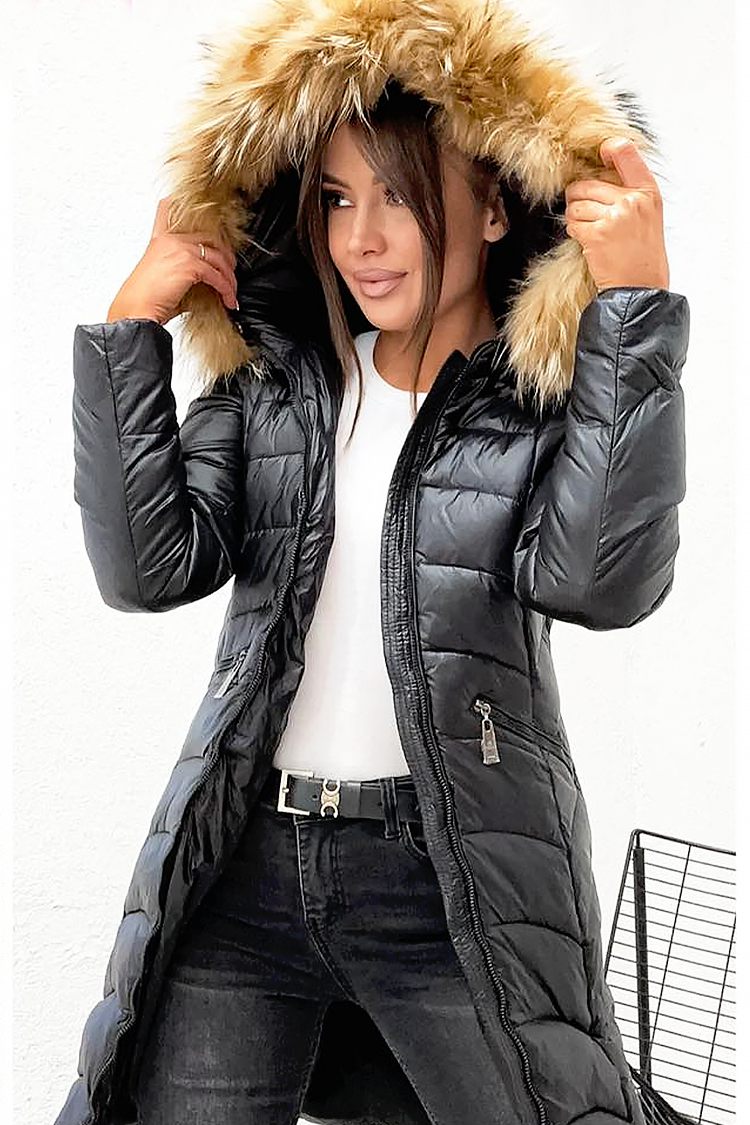 - Το μοντέλο έχει άνετη γραμμή, πρακτικές τσέπες, φερμουάρ για μεγαλύτερη άνεση και κουκούλα με γούνα.