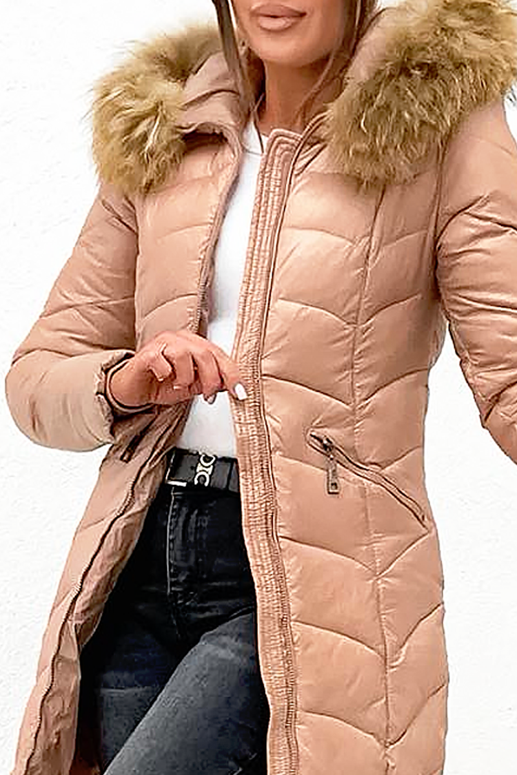 - Το μοντέλο έχει άνετη γραμμή, πρακτικές τσέπες, φερμουάρ για μεγαλύτερη άνεση και κουκούλα με γούνα.