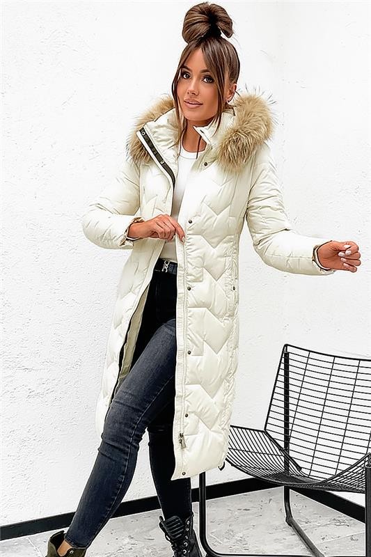 - Το μοντέλο έχει άνετη γραμμή, πρακτικές τσέπες, φερμουάρ για μεγαλύτερη άνεση και κουκούλα με γούνα.