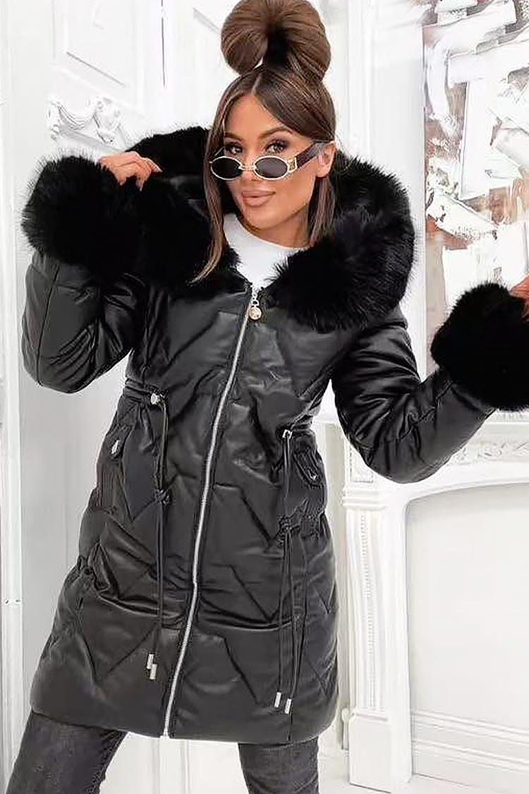 - Το μοντέλο έχει άνετη γραμμή, κουκούλα με γούνα και φερμουάρ σε όλο το μήκος.