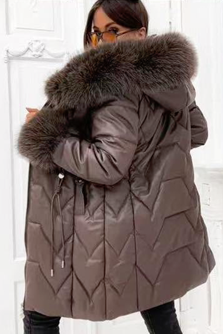 - Το μοντέλο έχει άνετη γραμμή, κουκούλα με γούνα και φερμουάρ σε όλο το μήκος.