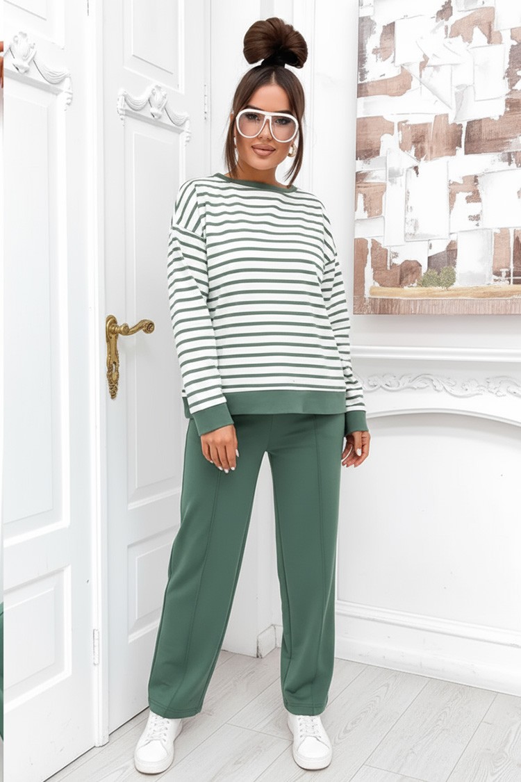 - Καθημερινό γυναικείο σετ δύο τεμαχίων με εντυπωσιακό ριγέ σχέδιο.