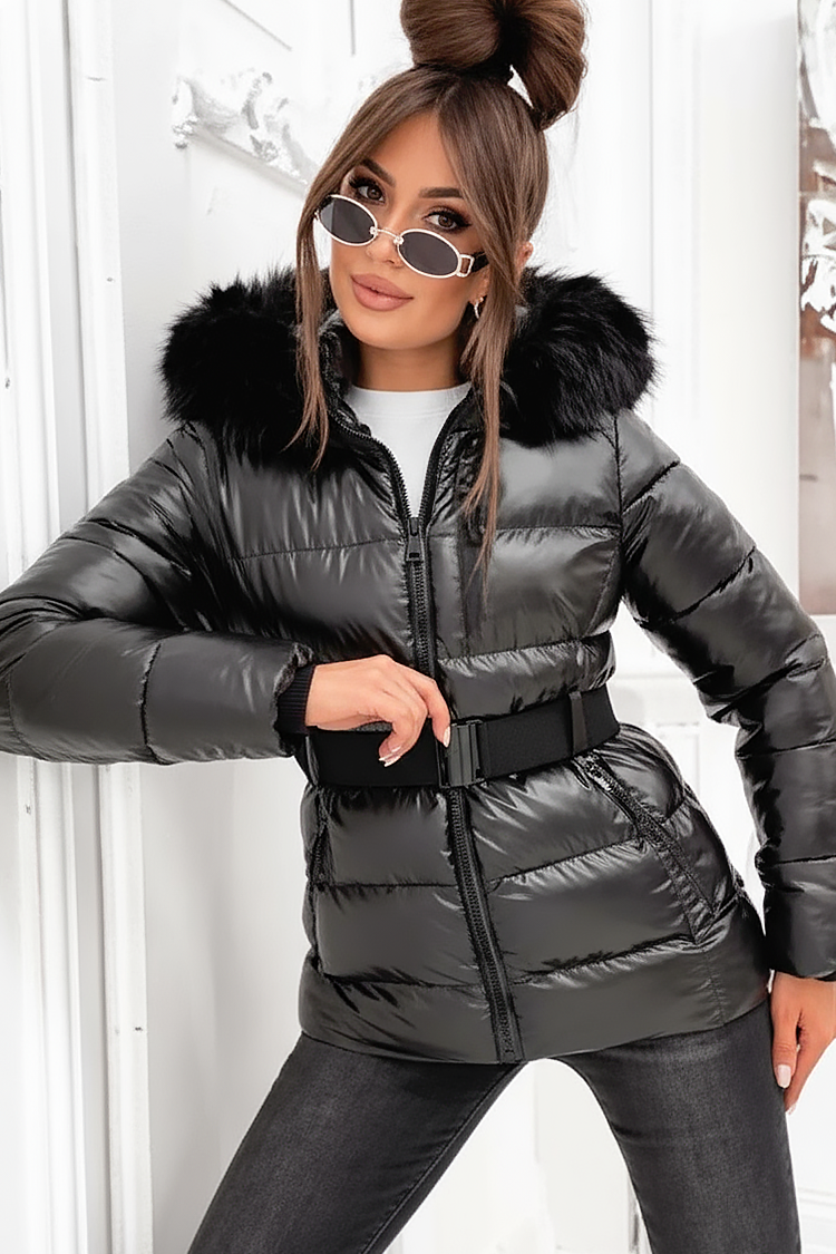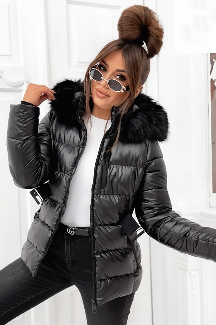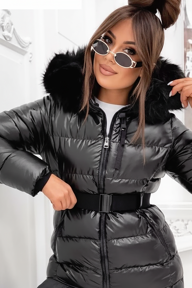 - Το μοντέλο έχει άνετη γραμμή, πρακτικές πλαϊνές τσέπες, φερμουάρ, κουκούλα με γούνα και άνετη ζώνη.