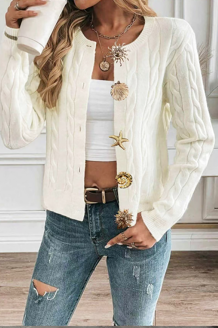 - Γυναικεία ζακέτα με μονόχρωμο σχέδιο, κατάλληλη για φθινοπωρινές μοντέρνες εμφανίσεις.