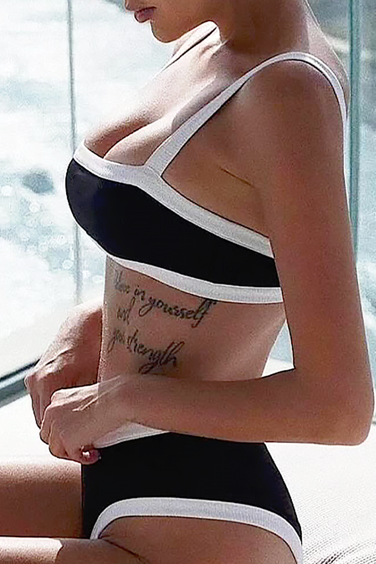 - Το κάτω μέρος είναι με ψηλή μέση, που τονίζει τις καμπύλες και δημιουργεί οπτική ισορροπία με το πάνω μέρος.