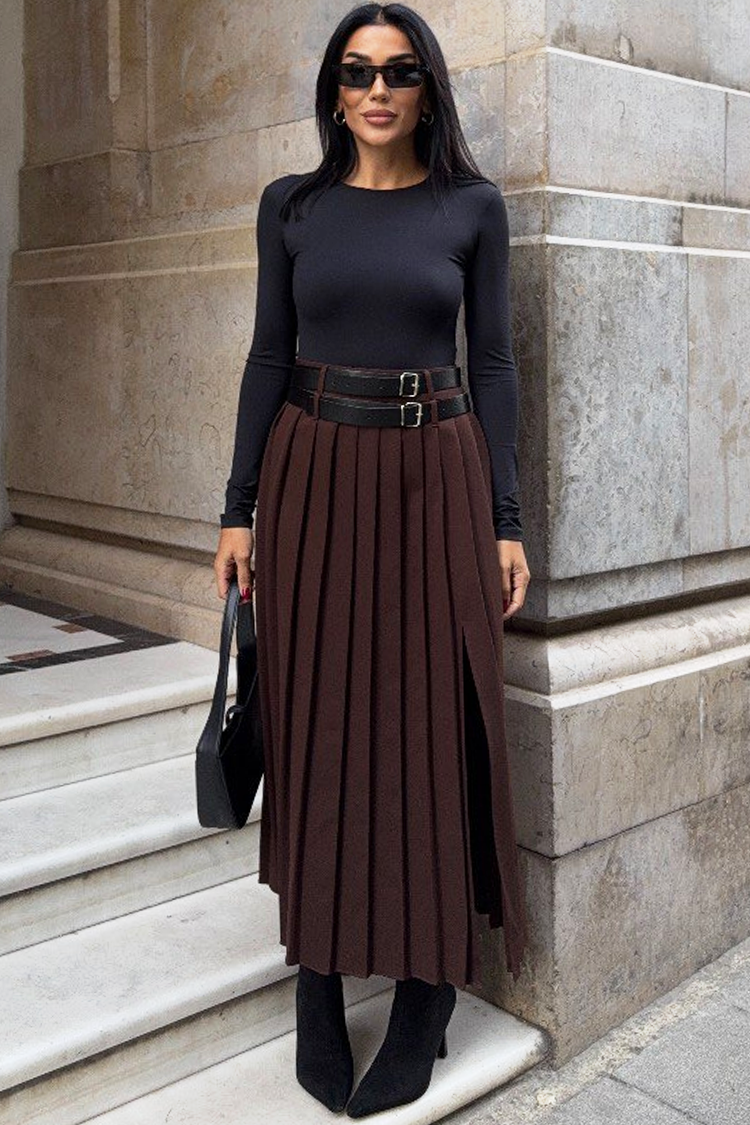 - Η φούστα διατίθεται με δύο ζώνες σε μαύρο χρώμα.