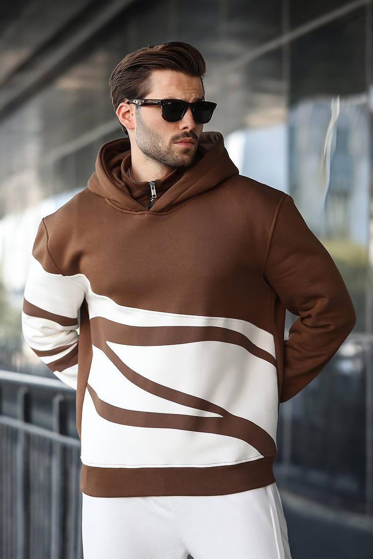 - Σπορ-καθημερινό ανδρικό φούτερ με φερμουάρ, κουκούλα και εντυπωσιακό στοιχείο.
