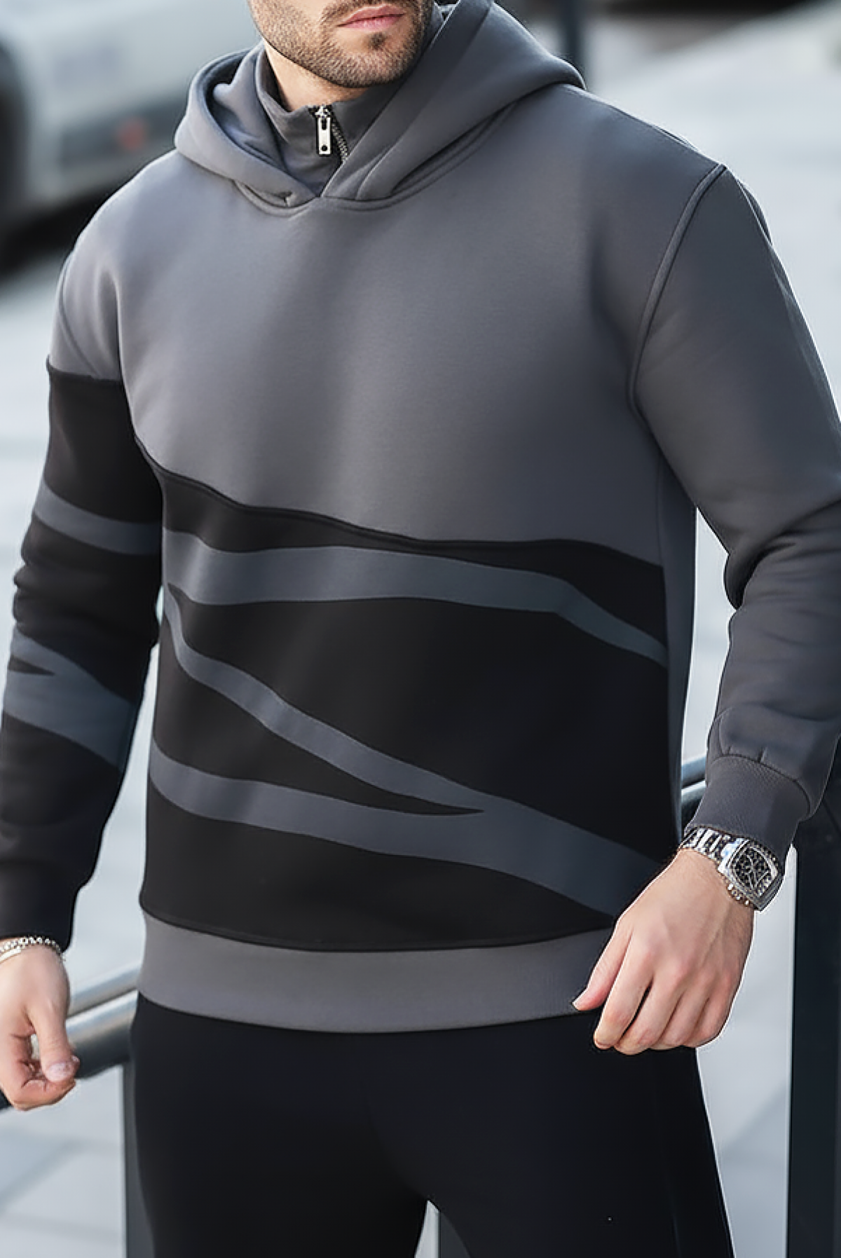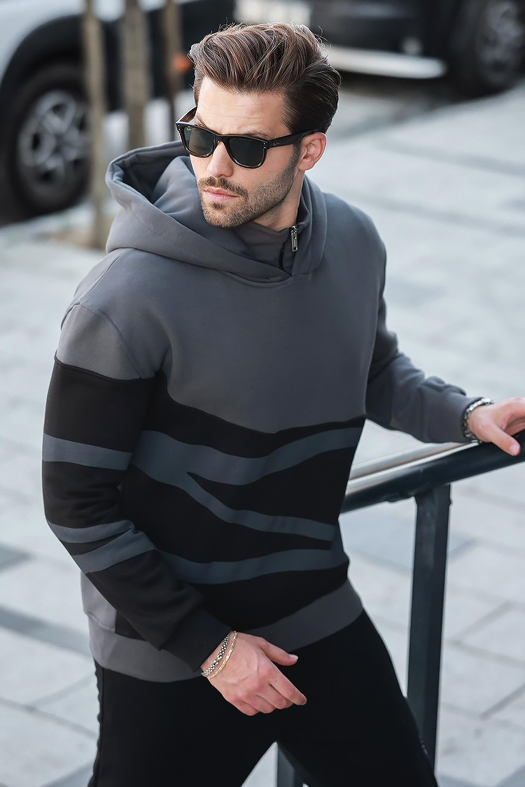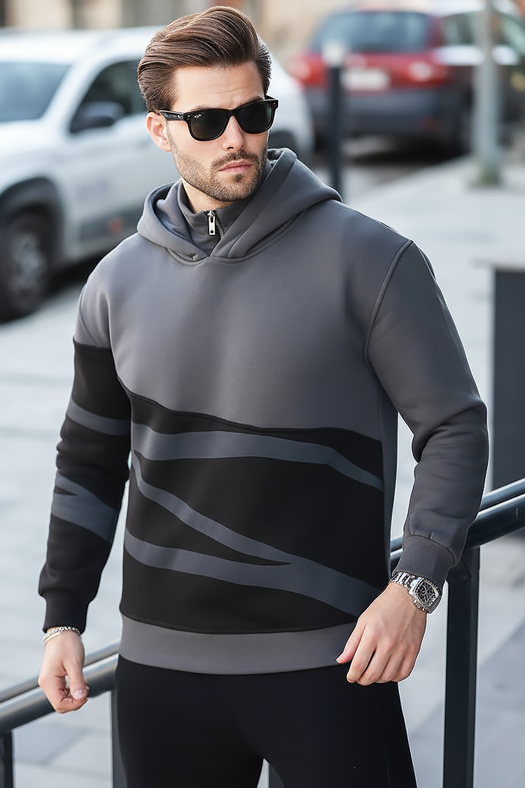 - Σπορ-καθημερινό ανδρικό φούτερ με φερμουάρ, κουκούλα και εντυπωσιακό στοιχείο.