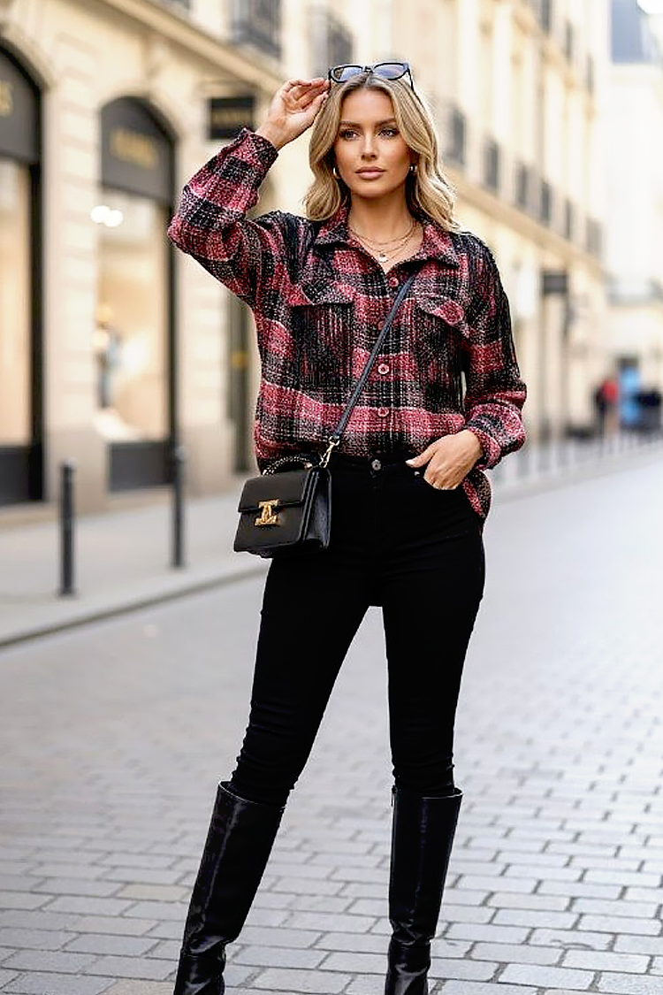 - Το μοντέλο έχει καρό σχέδιο και κανονικό κλείσιμο με κουμπιά σε όλο το μήκος.