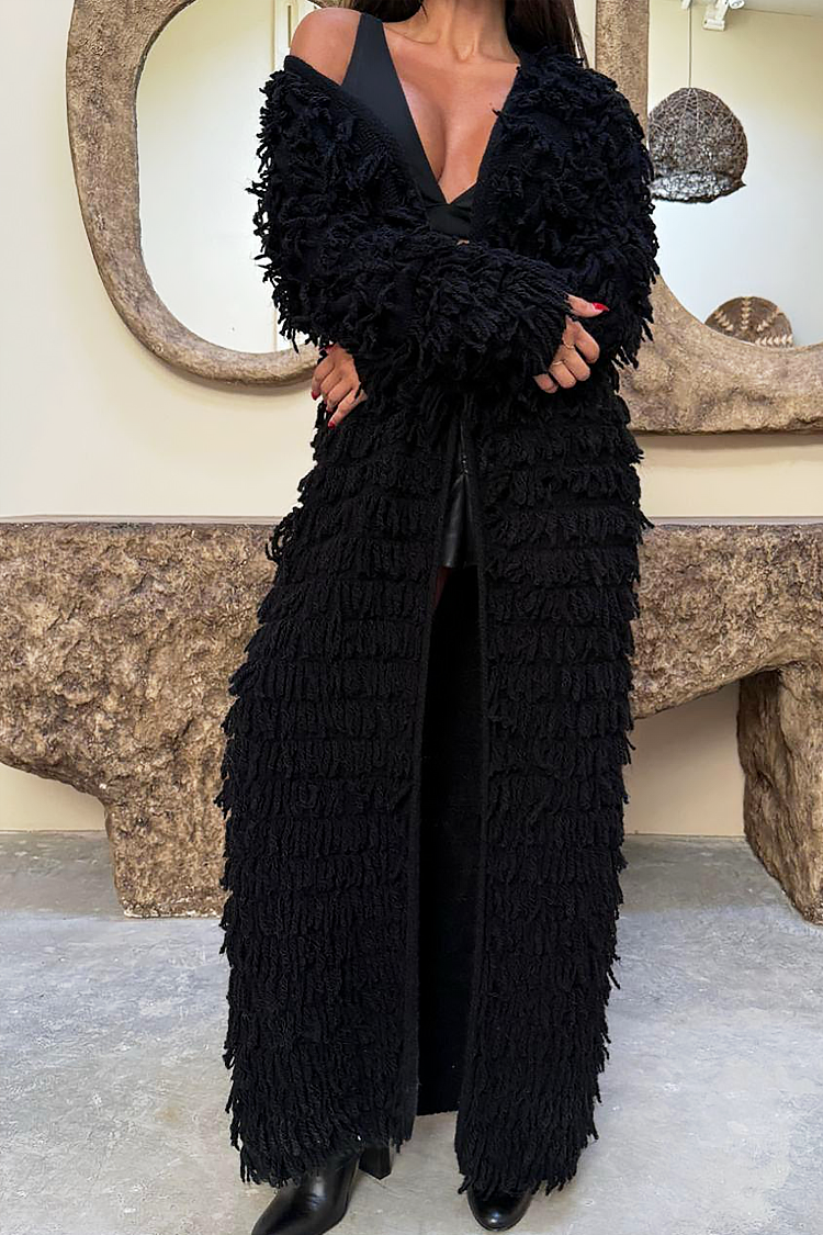 - Μαλακή και μακριά γυναικεία ζακέτα με μοντέρνο σχέδιο, κατάλληλη για καθημερινές μοντέρνες εμφανίσεις.