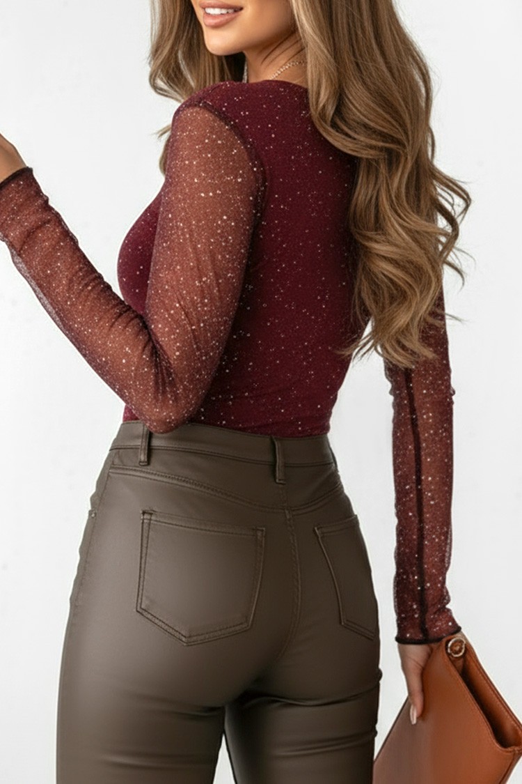 - Η μπλούζα έχει μακριά μανίκια και λαμπερά στοιχεία που την κάνουν ακόμα πιο ελκυστική.