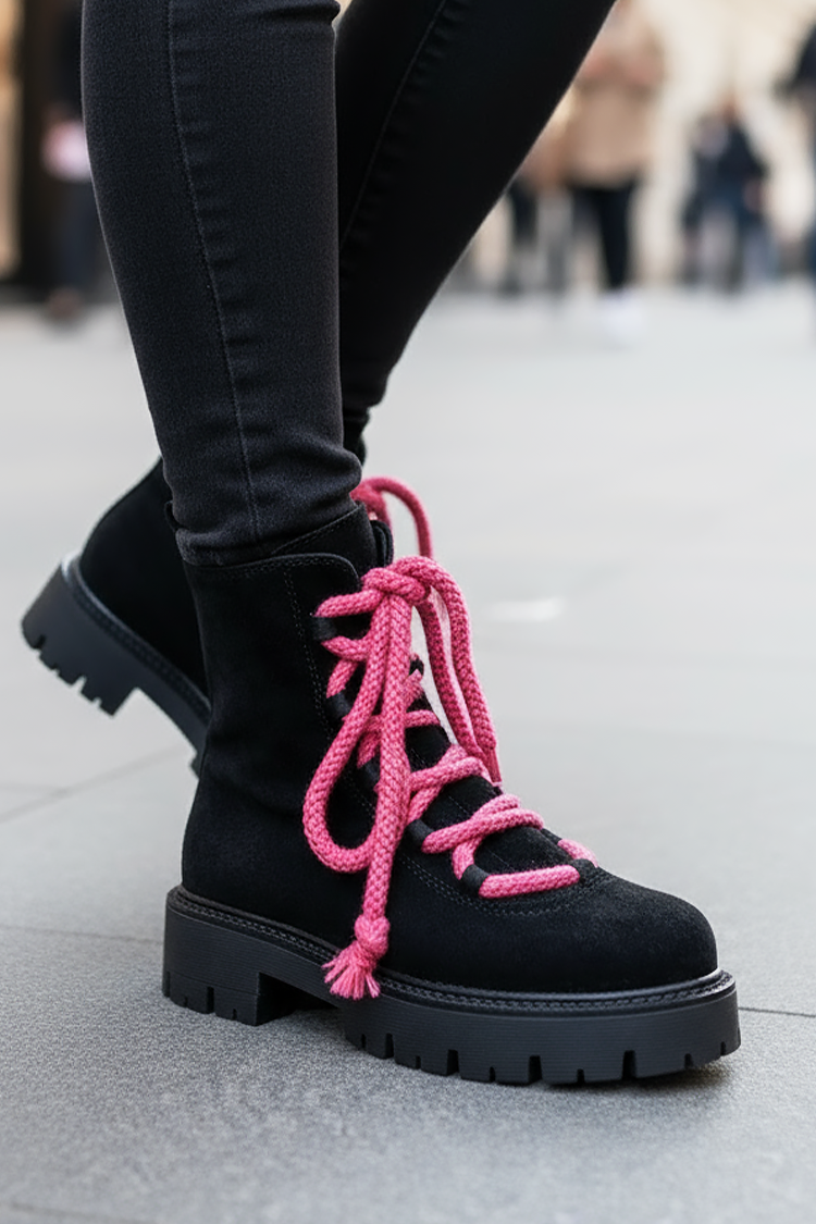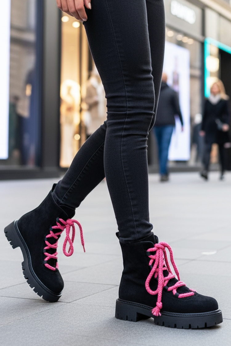 - Για να νιώθετε άνετα, αλλά και κομψά, επιλέξτε αυτές τις γυναικείες μπότες με μεγάλα κορδόνια.