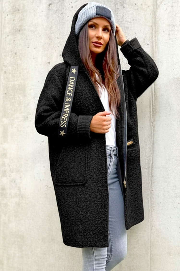 - Το μοντέλο έχει εντυπωσιακή γραμμή και μήκος, πρακτικές τσέπες, κουκούλα και κλείσιμο με φερμουάρ.
