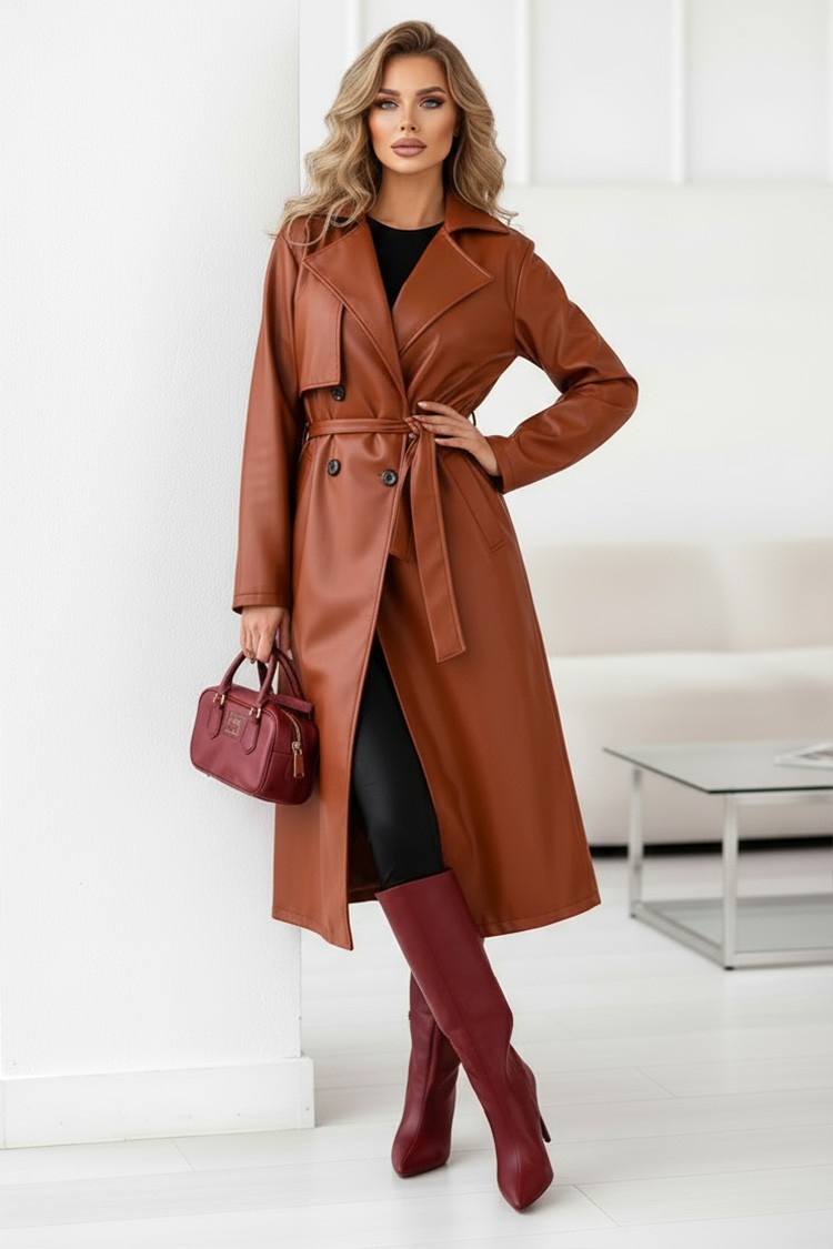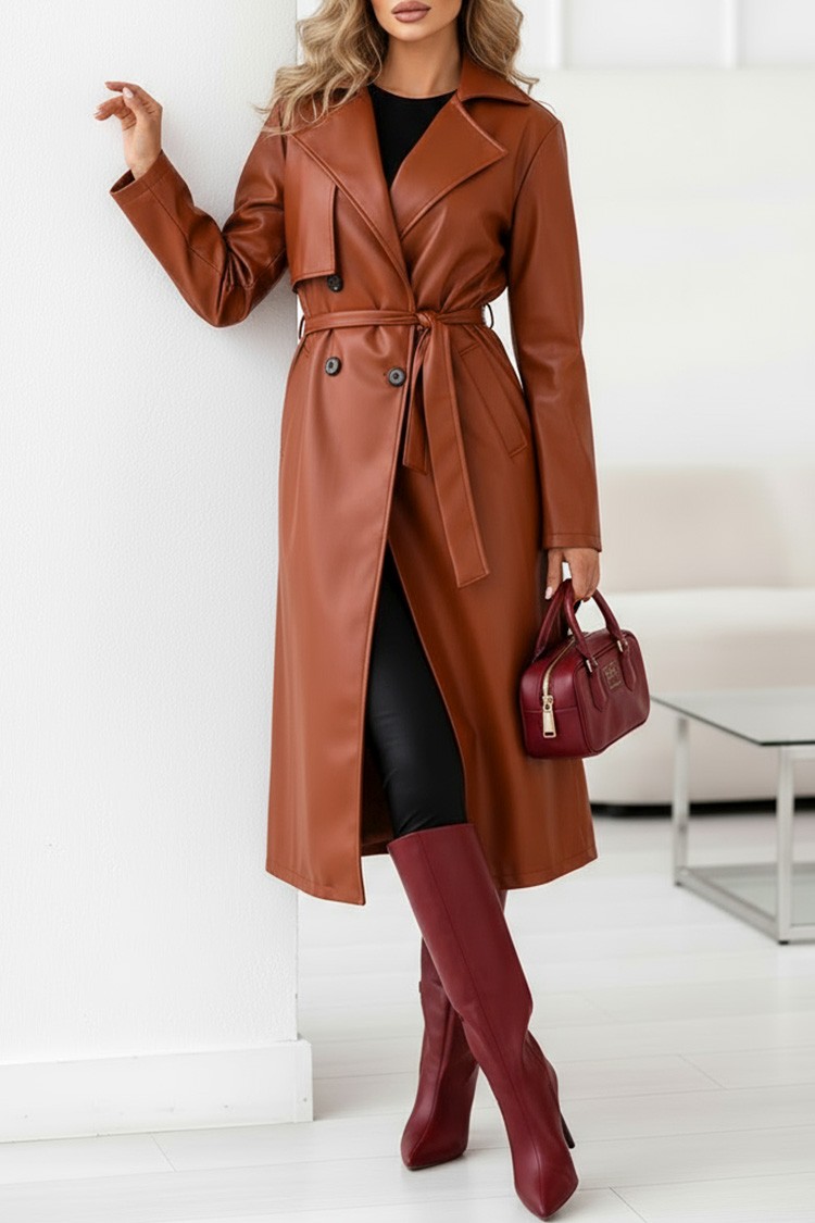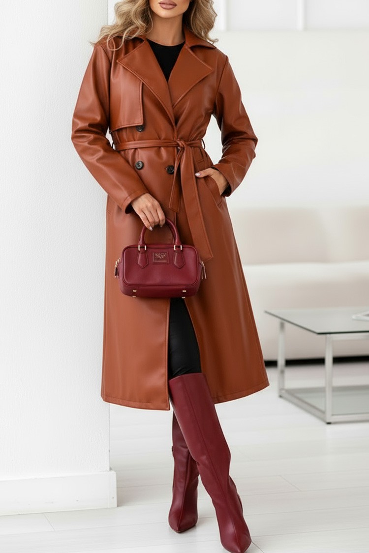 - Συμπληρώστε την μοντέρνα εμφάνισή σας με ένα διπλό παλτό με μονόχρωμο σχέδιο, κατάλληλο για διάφορους συνδυασμούς.