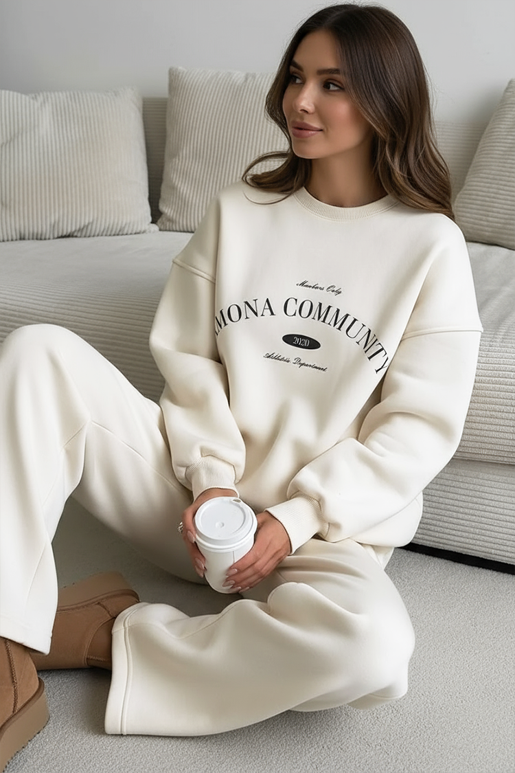 - Καθημερινό γυναικείο σετ δύο τεμαχίων σε μονόχρωμο σχέδιο.