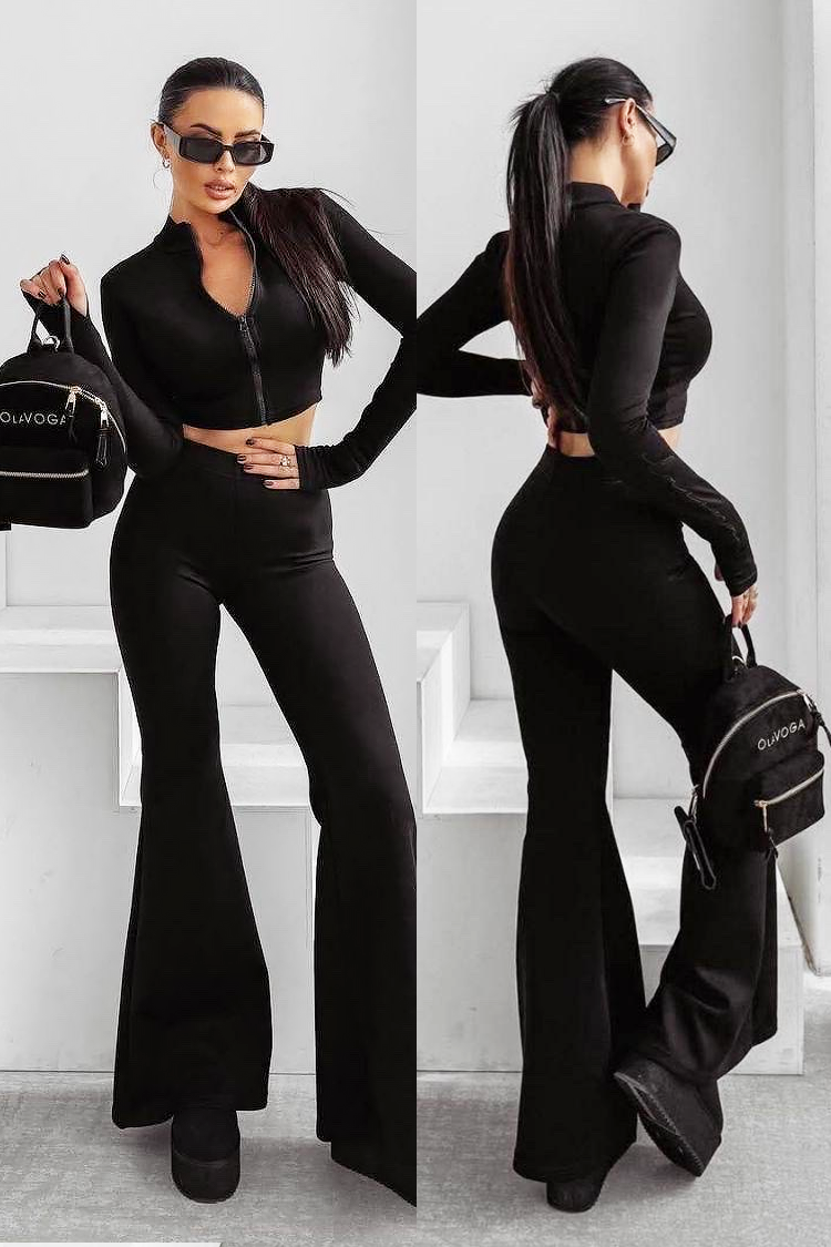 - Καθημερινό γυναικείο σετ δύο τεμαχίων σε μονόχρωμο σχέδιο.