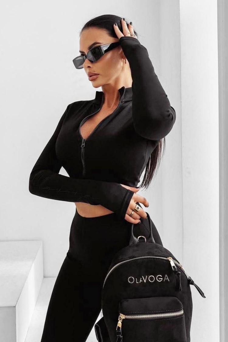 - Το πάνω μέρος είναι φούτερ με εφαρμοστή γραμμή, κοντό μήκος, φερμουάρ και γιακά.