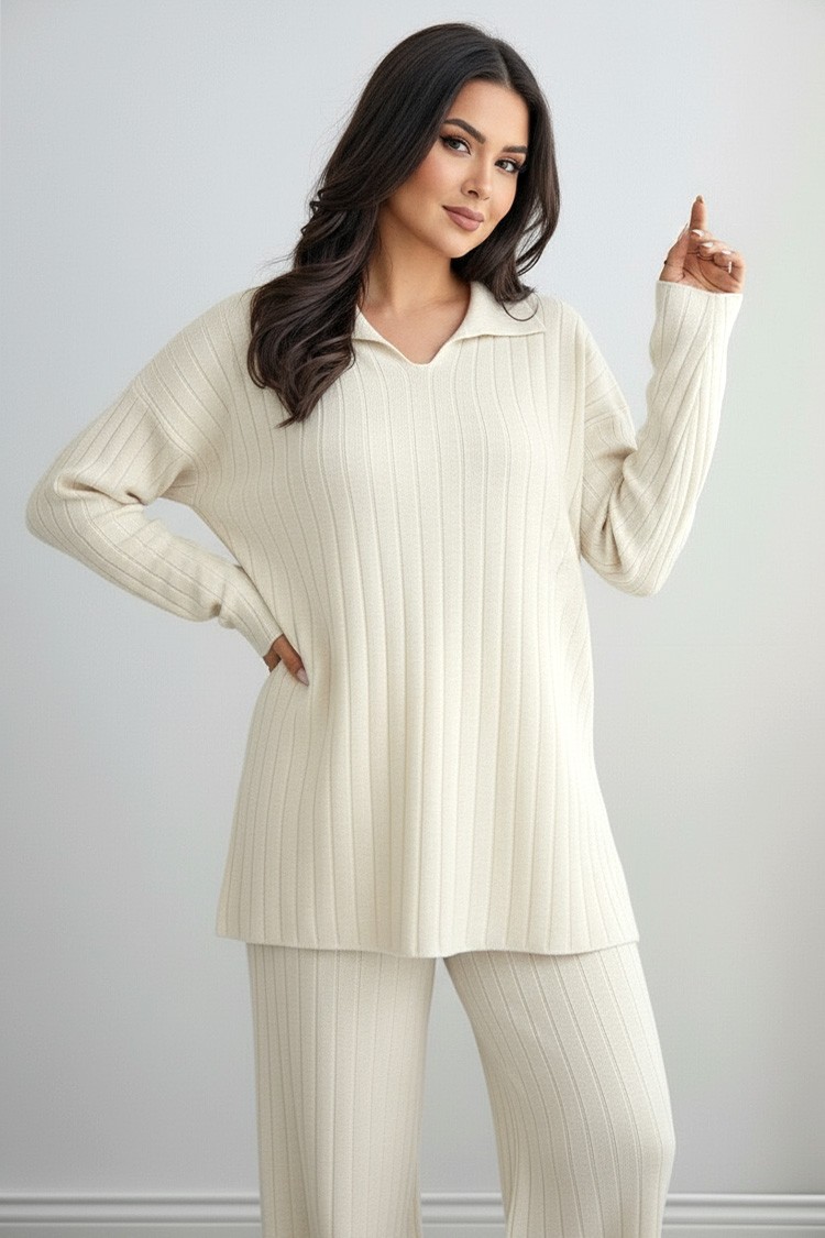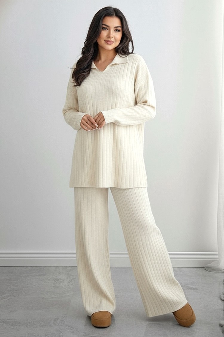 - Καθημερινό γυναικείο σετ δύο τεμαχίων με μονόχρωμο μοτίβο.