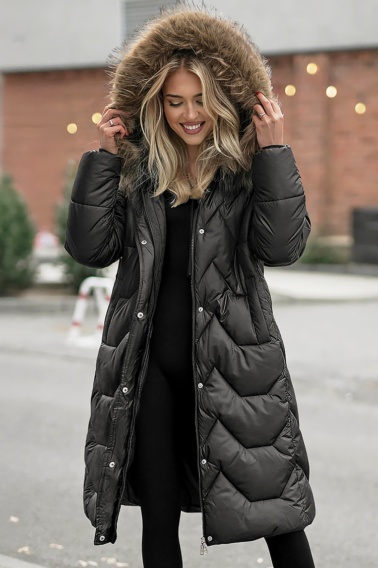 - Το μοντέλο έχει ελεύθερη γραμμή, πρακτική κουκούλα και κλείνει με φερμουάρ και κουμπιά μπροστά.