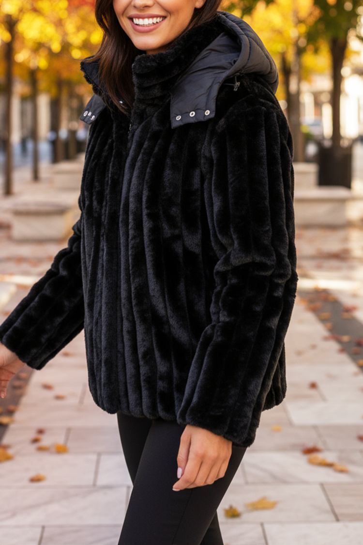- Το μοντέλο έχει άνετη γραμμή, κλείσιμο με φερμουάρ, μεγάλη κουκούλα και γούνα σε όλο το μήκος.