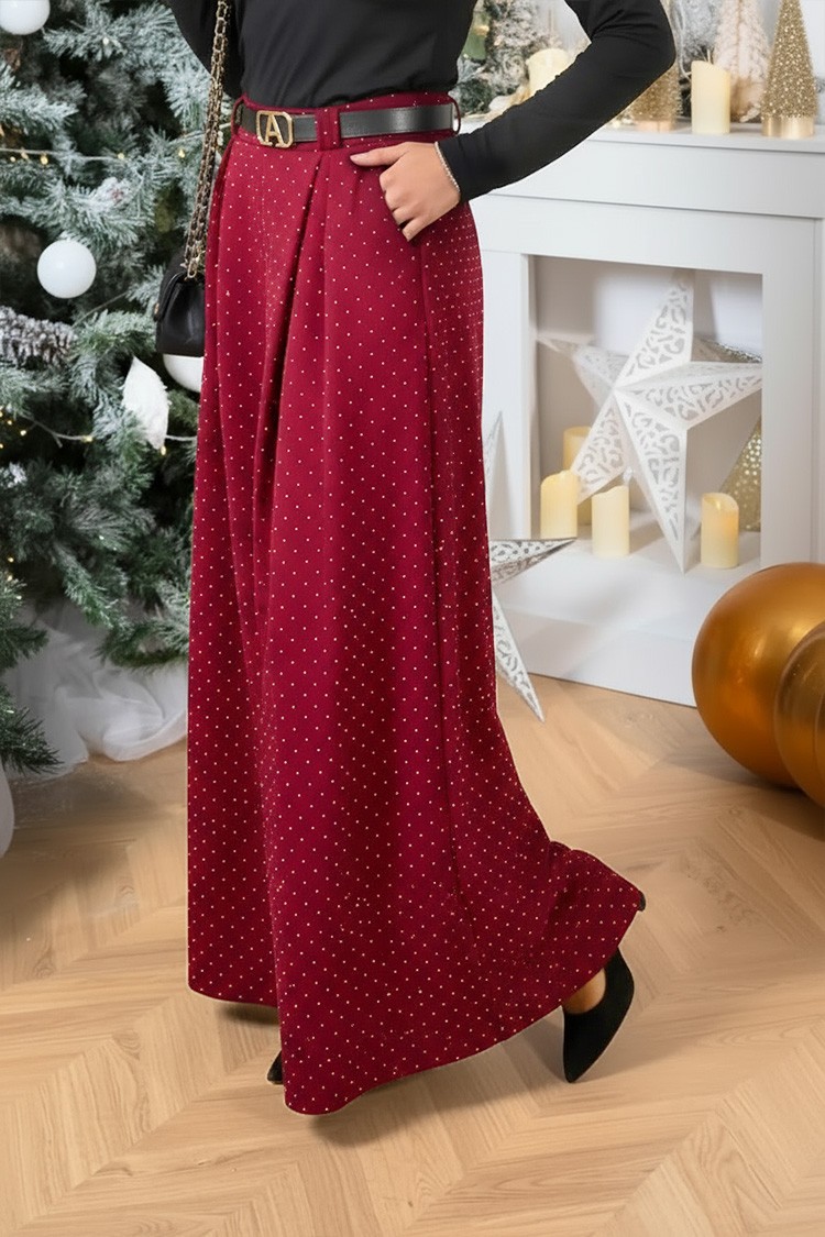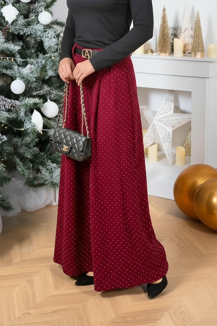 - Για την καθημερινή σας εμφάνιση, επιλέξτε αυτό το μακρύ παντελόνι με πουά μοτίβο.