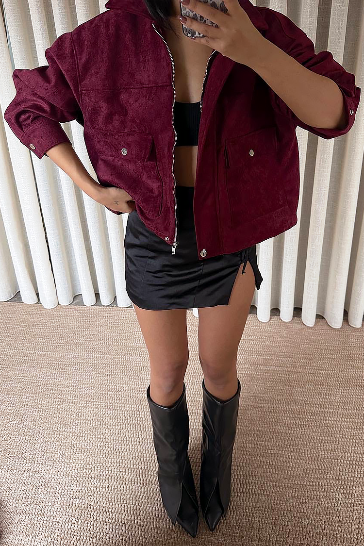 - Το μοντέλο έχει άνετη γραμμή, κατάλληλη για κάθε φιγούρα, γιακά, εντυπωσιακές τσέπες και κλείνει με φερμουάρ μπροστά.