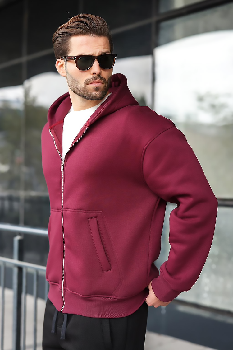 - Άνετο ανδρικό φούτερ με τσέπες σε μπορντό χρώμα, κατάλληλο για καθημερινή χρήση, αθλητισμό ή βόλτα.
