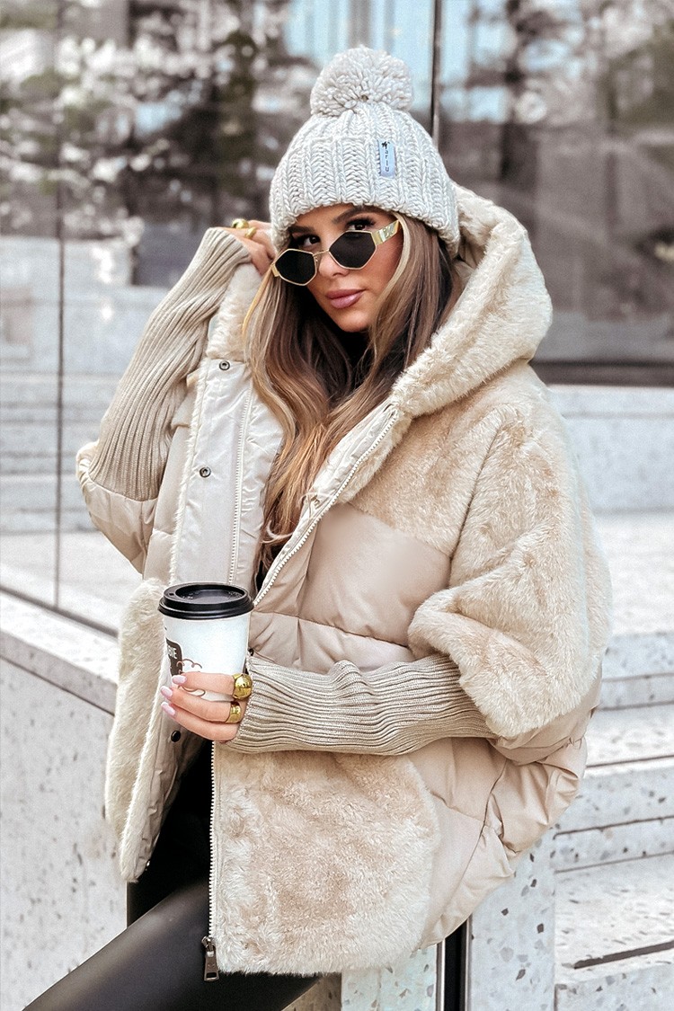 - Το μοντέλο έχει άνετη γραμμή, κλείσιμο με κουμπιά, μεγάλη κουκούλα και πούπουλο σε όλο το μήκος.