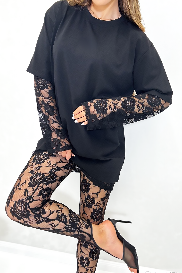 - Η μπλούζα έχει ελεύθερη γραμμή και ραμμένο oversize μπλουζάκι.
