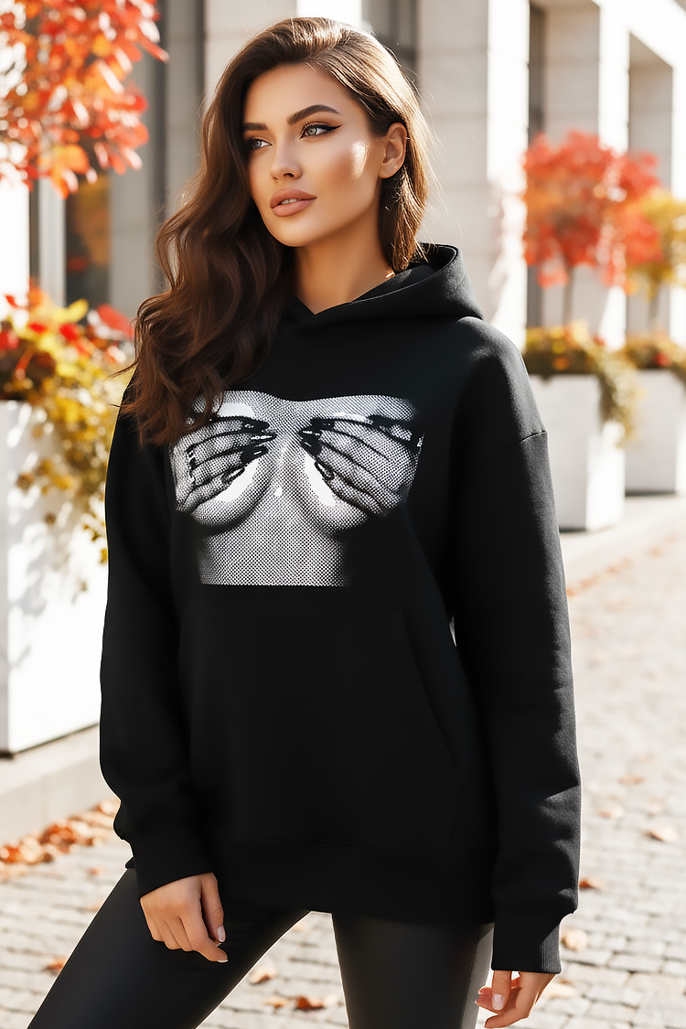 - Για μια μοντέρνα εμφάνιση, επιλέξτε αυτό το φούτερ με εντυπωσιακό τύπωμα.