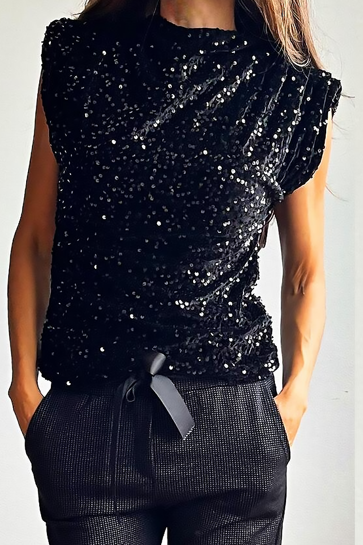 - Το τοπ έχει εντυπωσιακό σχέδιο και παγιέτες σε όλο το μήκος.