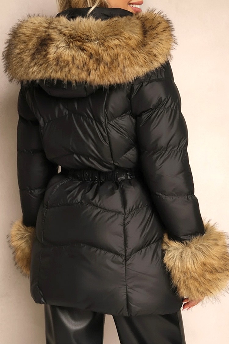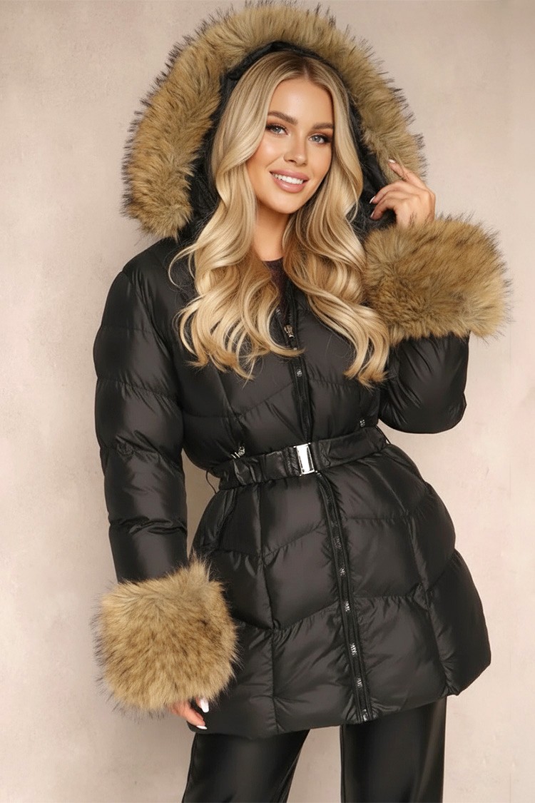 - Το μοντέλο έχει ελεύθερη γραμμή και πρακτική κουκούλα με γούνα, το οποίο υπάρχει και στα άκρα των μανικιών.