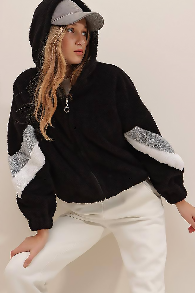 - Μοντέρνο γυναικείο άφρατο φούτερ με φερμουάρ σε κλασικά χρώματα, κατάλληλο για την καθημερινότητά σας.