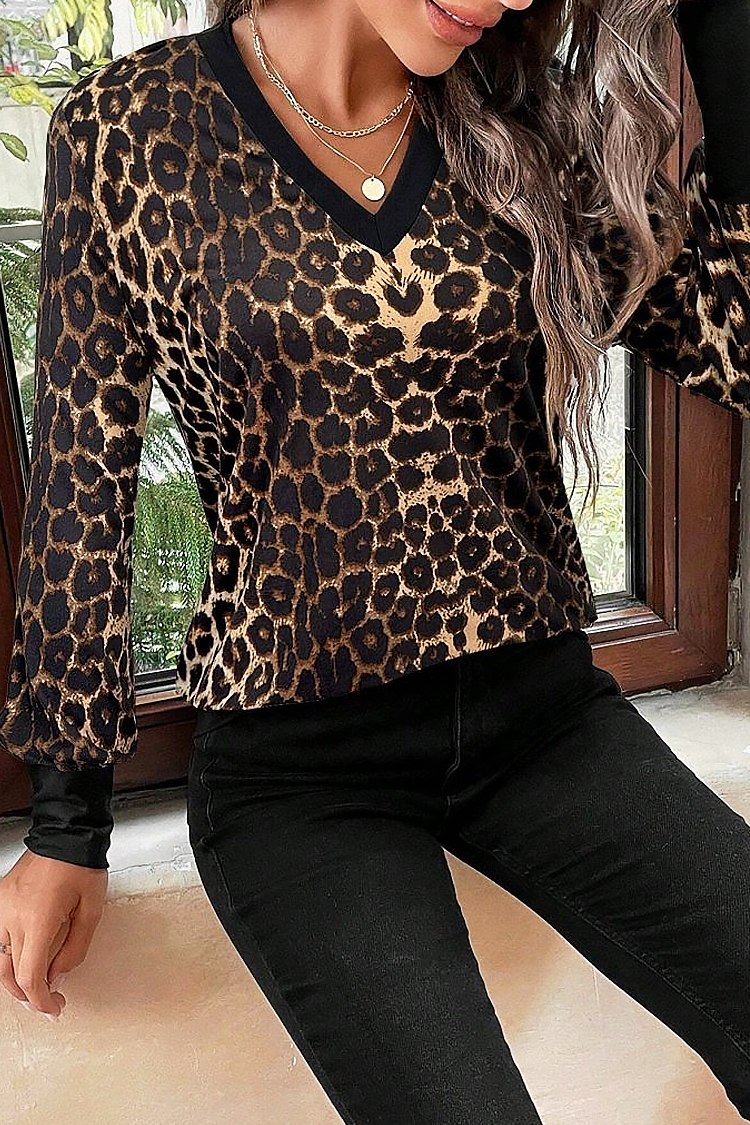 - Κομψό γυναικείο πουλόβερ με leopard μοτίβο, κατάλληλο για καθημερινές και trendy εμφανίσεις.
