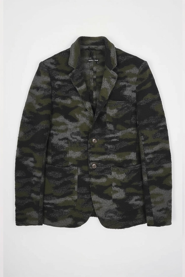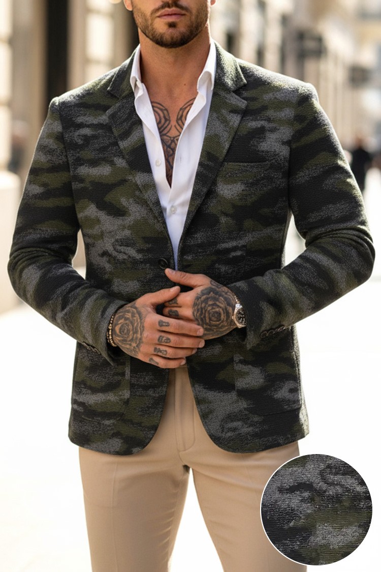 - Κομψό ανδρικό σακάκι με μοντέρνο καμουφλάζ σχέδιο, κατάλληλο τόσο για καθημερινή όσο και για κομψή εμφάνιση.