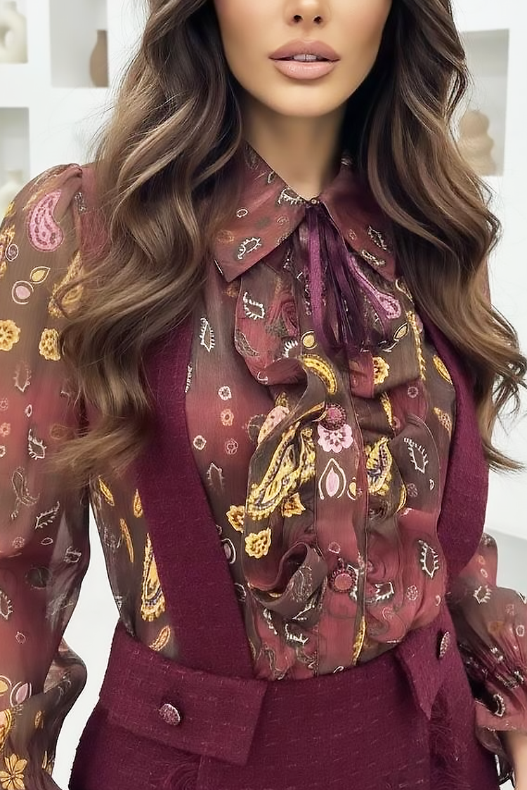 - Το μοντέλο έχει εφαρμοστή γραμμή, κομψές τιράντες και εντυπωσιακό σιφόν πάνω μέρος με μακριά μανίκια.