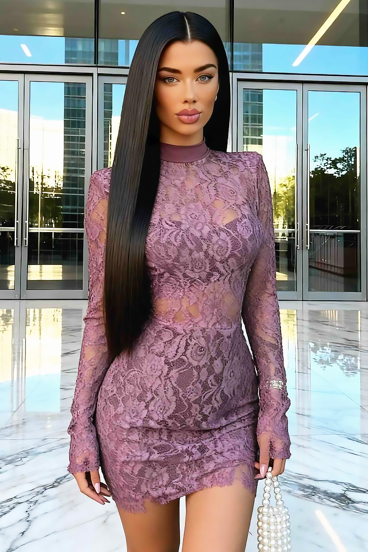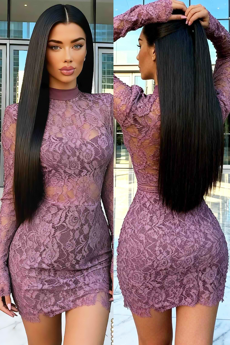 - Το μοντέλο έχει σέξι και εφαρμοστή γραμμή, μακριά μανίκια και δαντέλα σε όλο το μήκος.