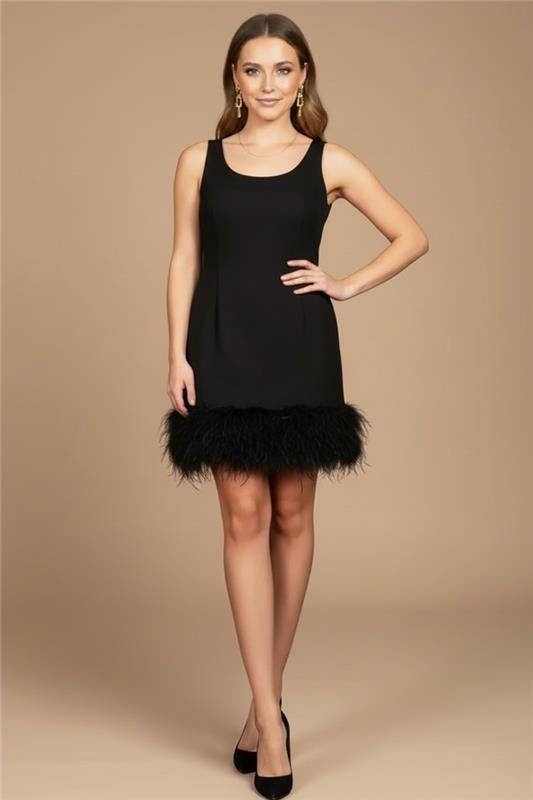 - Το μοντέλο έχει σέξι και εντυπωσιακή γραμμή, κλασική στρογγυλή λαιμόκοψη και ελκυστικά πούπουλα στα άκρα.