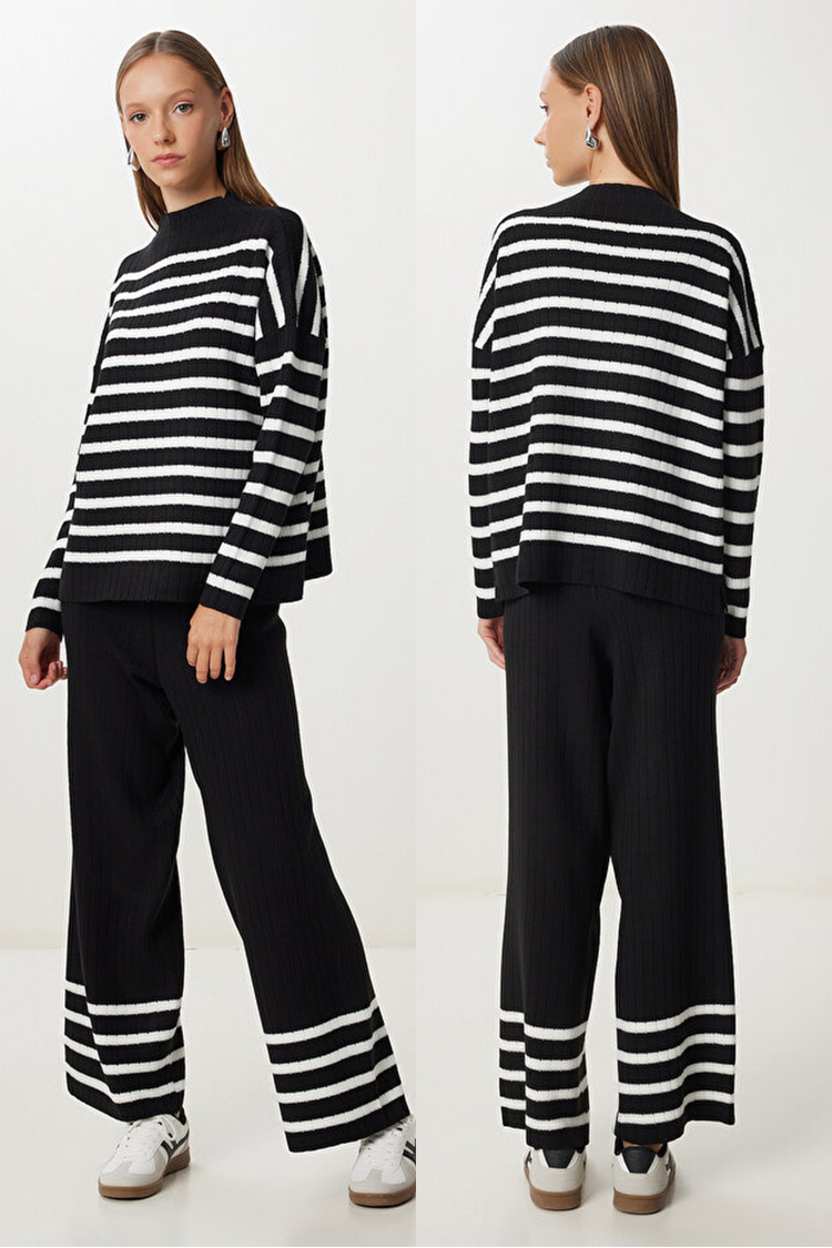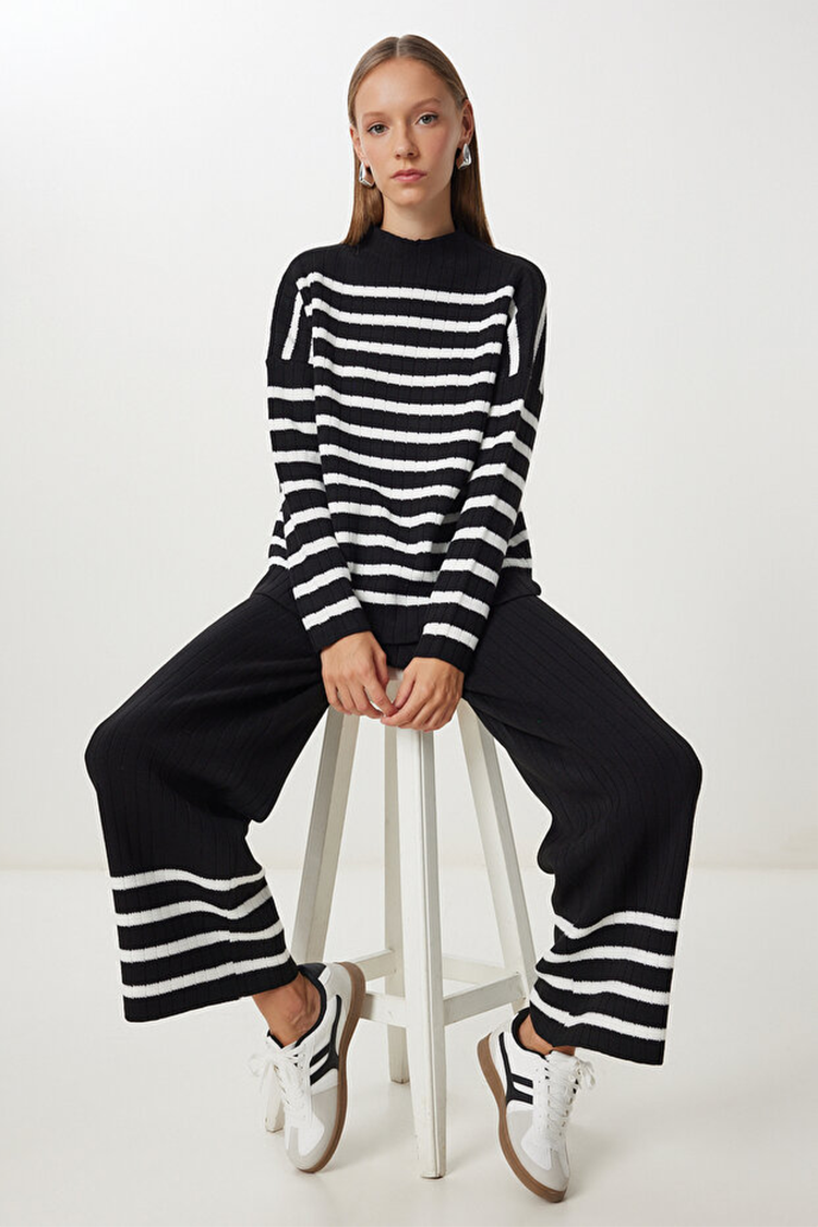 - Καθημερινό γυναικείο σετ δύο τεμαχίων με ριγέ σχέδιο.
